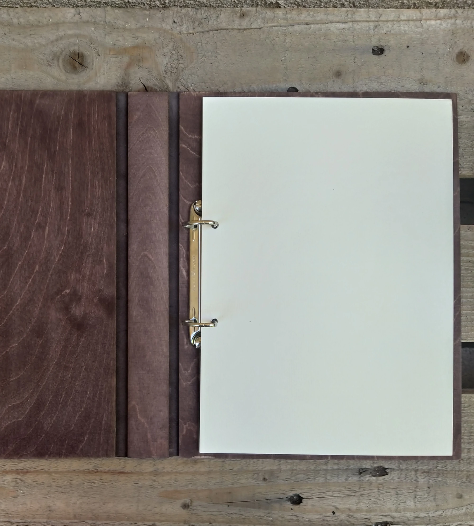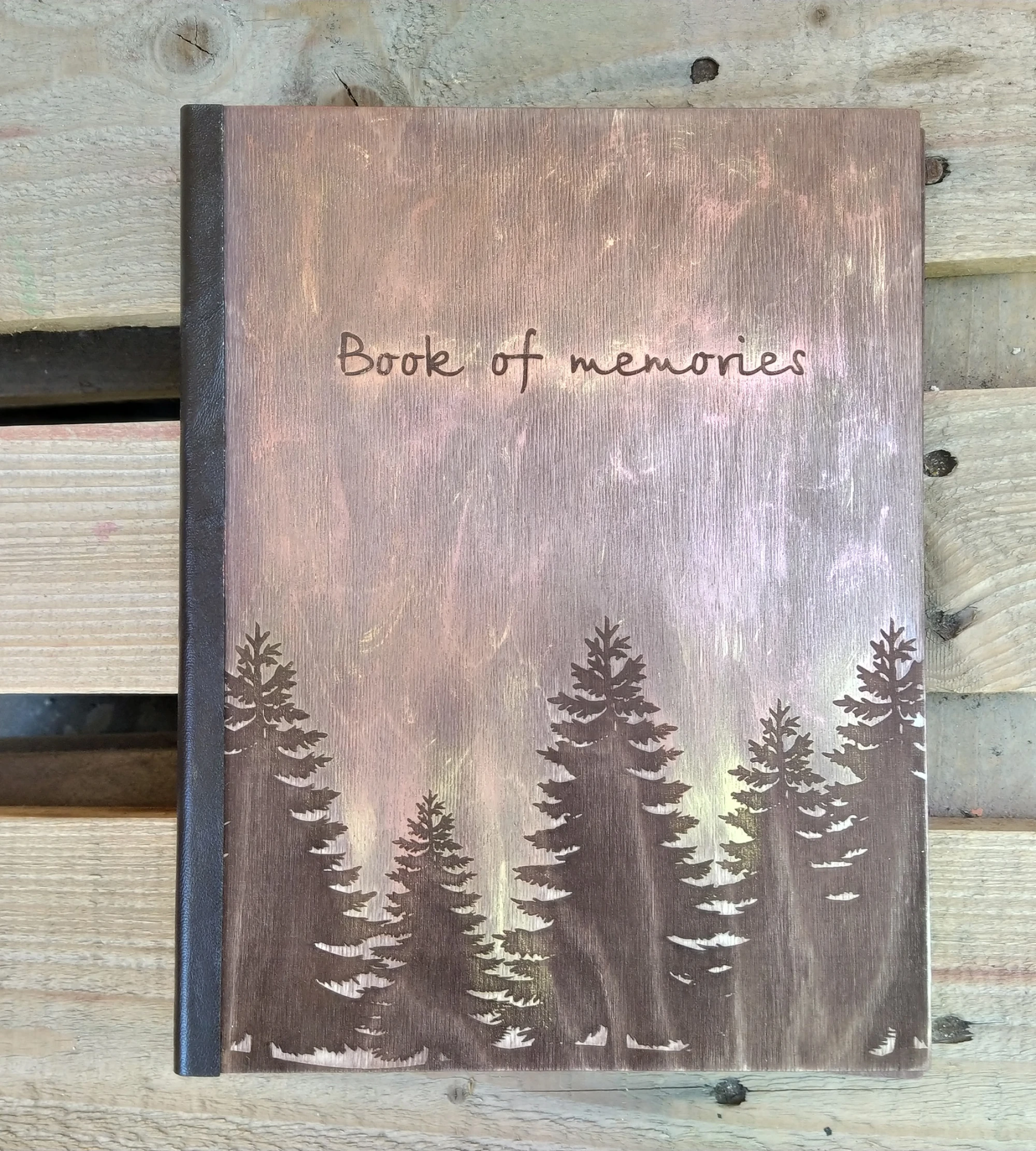 Албумът е изработен от дърво, естествена кожа, метален ринг механизъм.