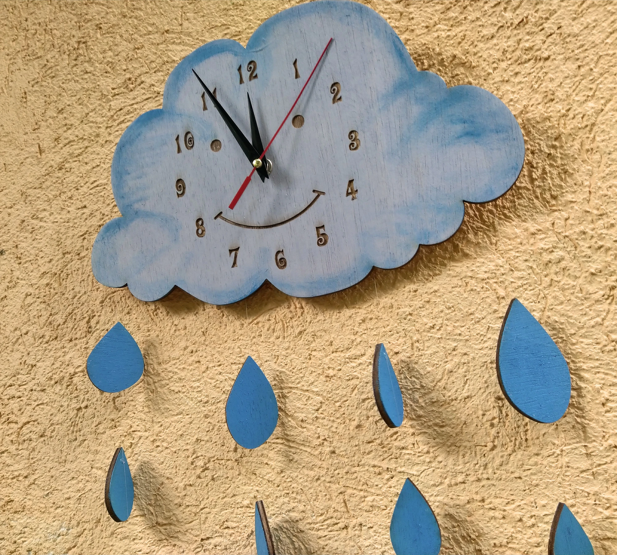 Детски, гравиран, дървен часовник за стена.