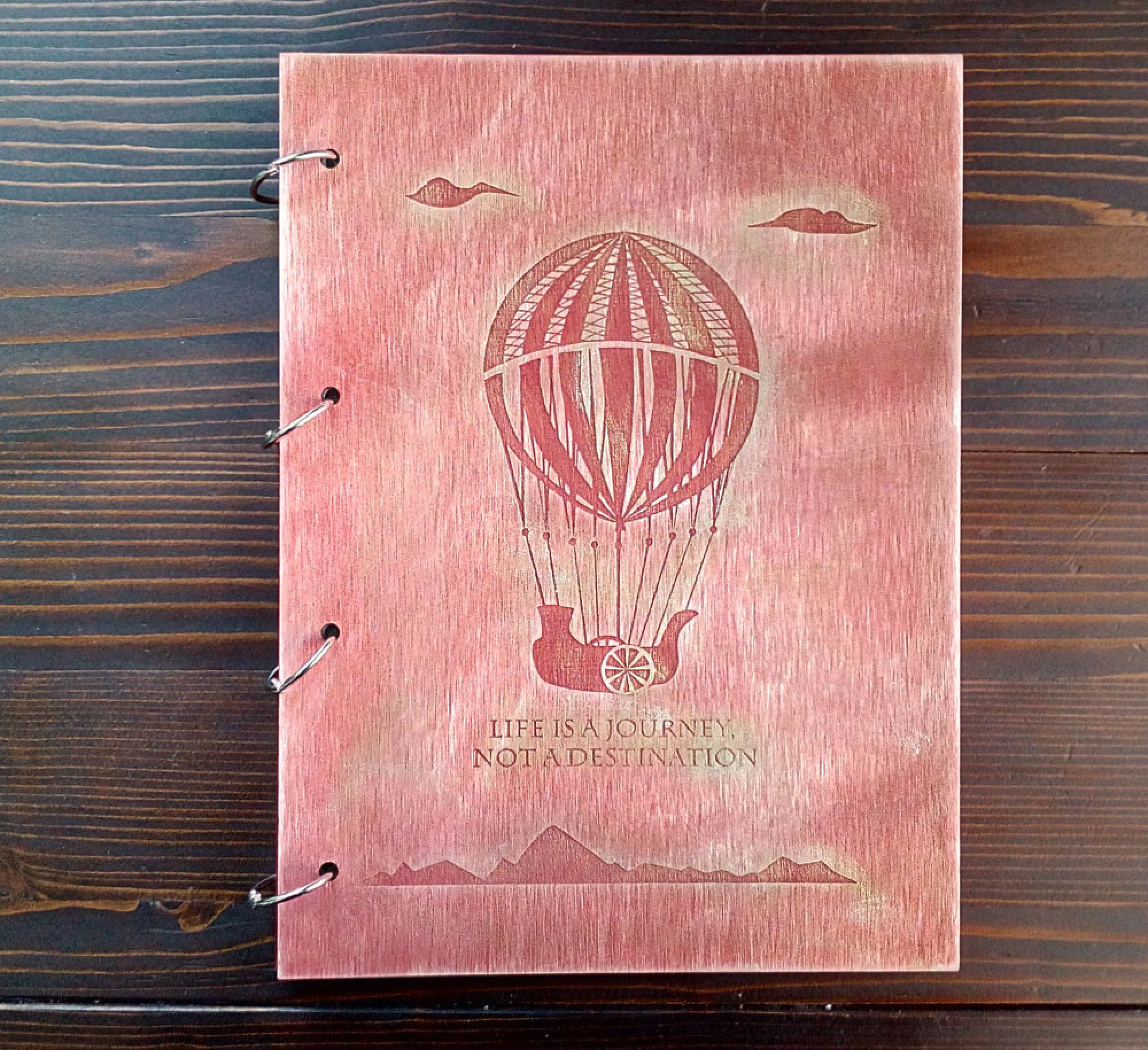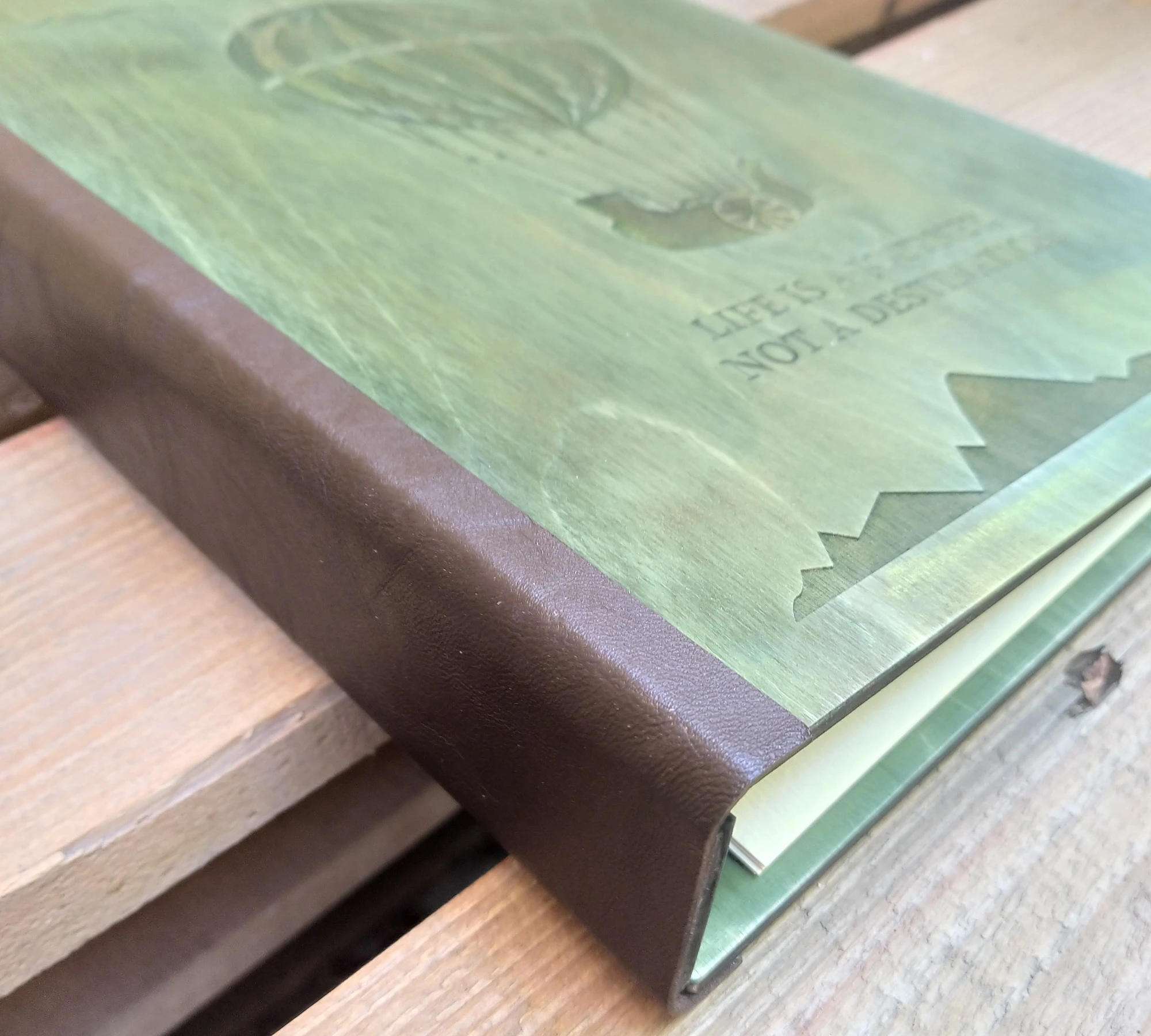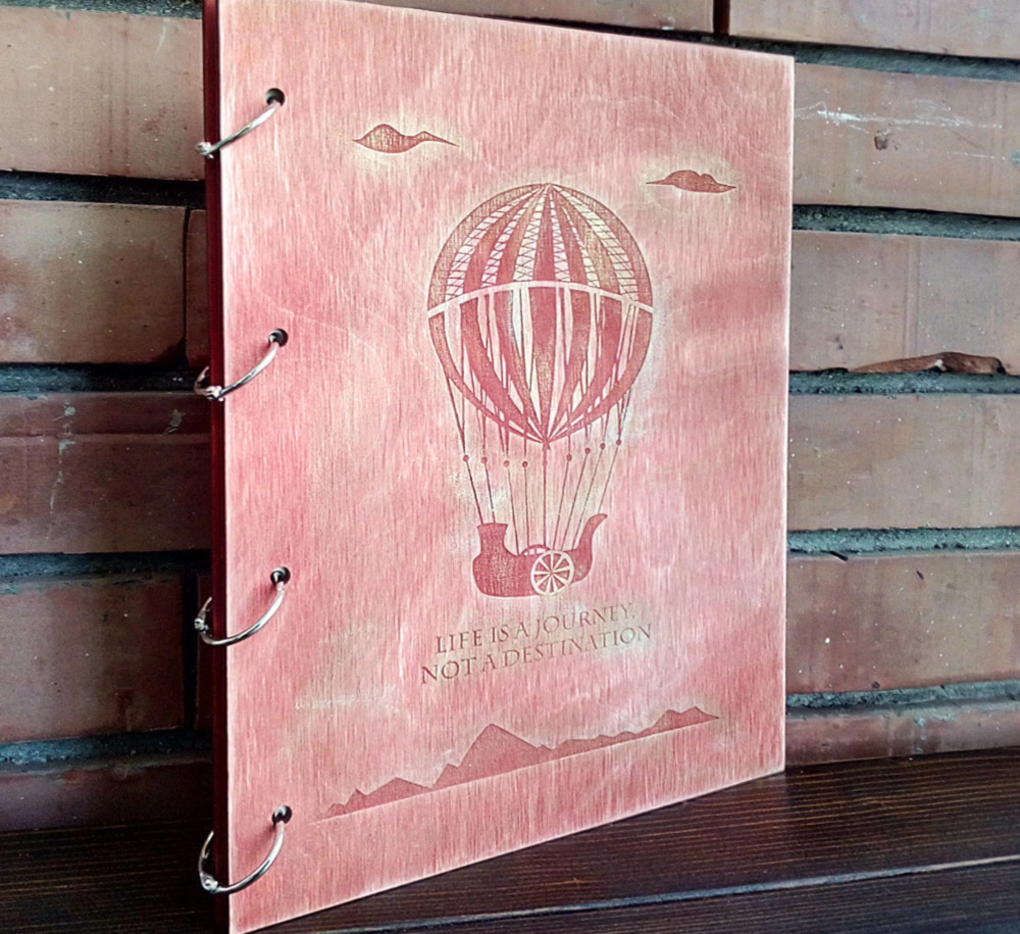 Албумът е изработен от дърво, естествена кожа, метален ринг механизъм.