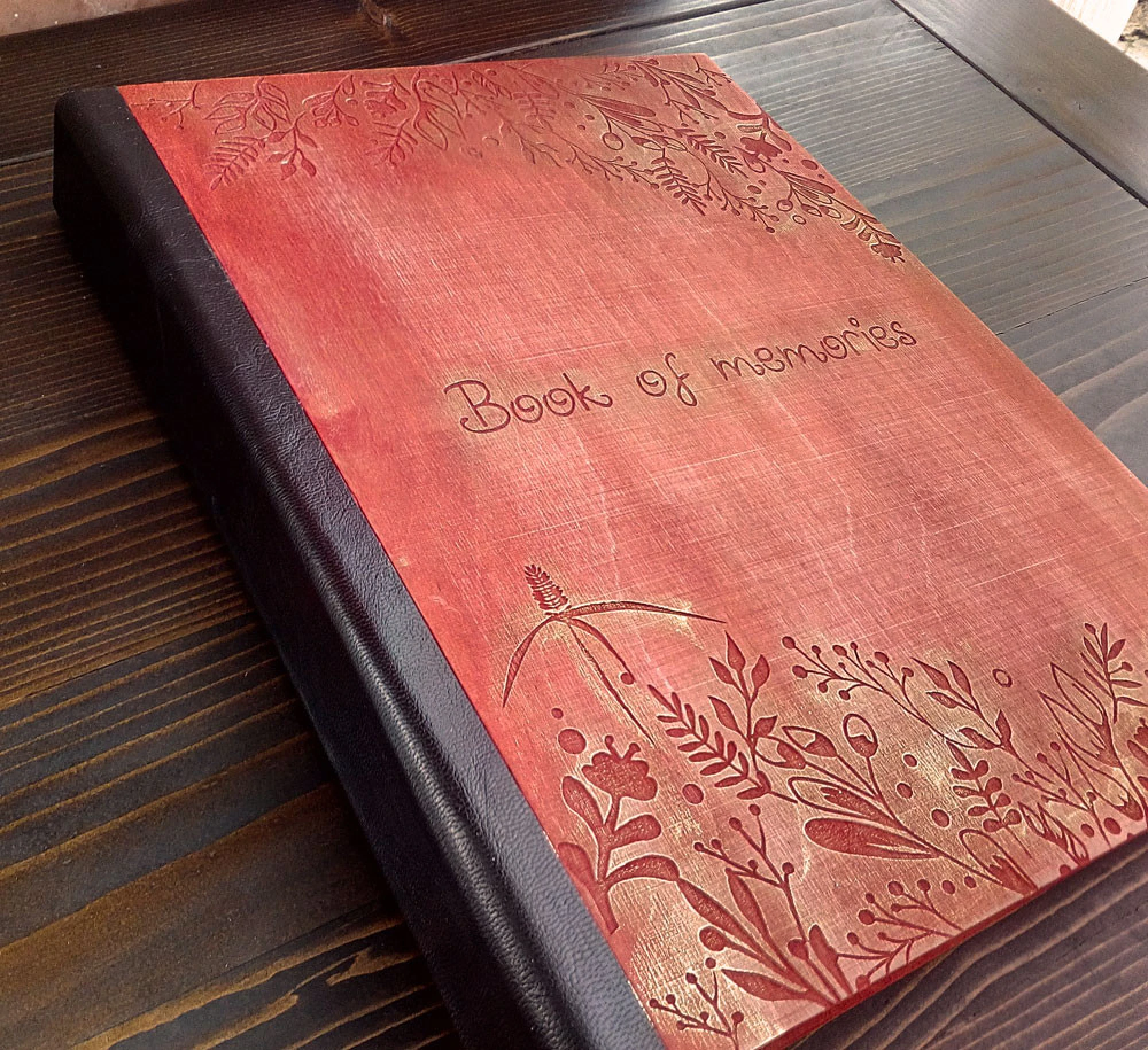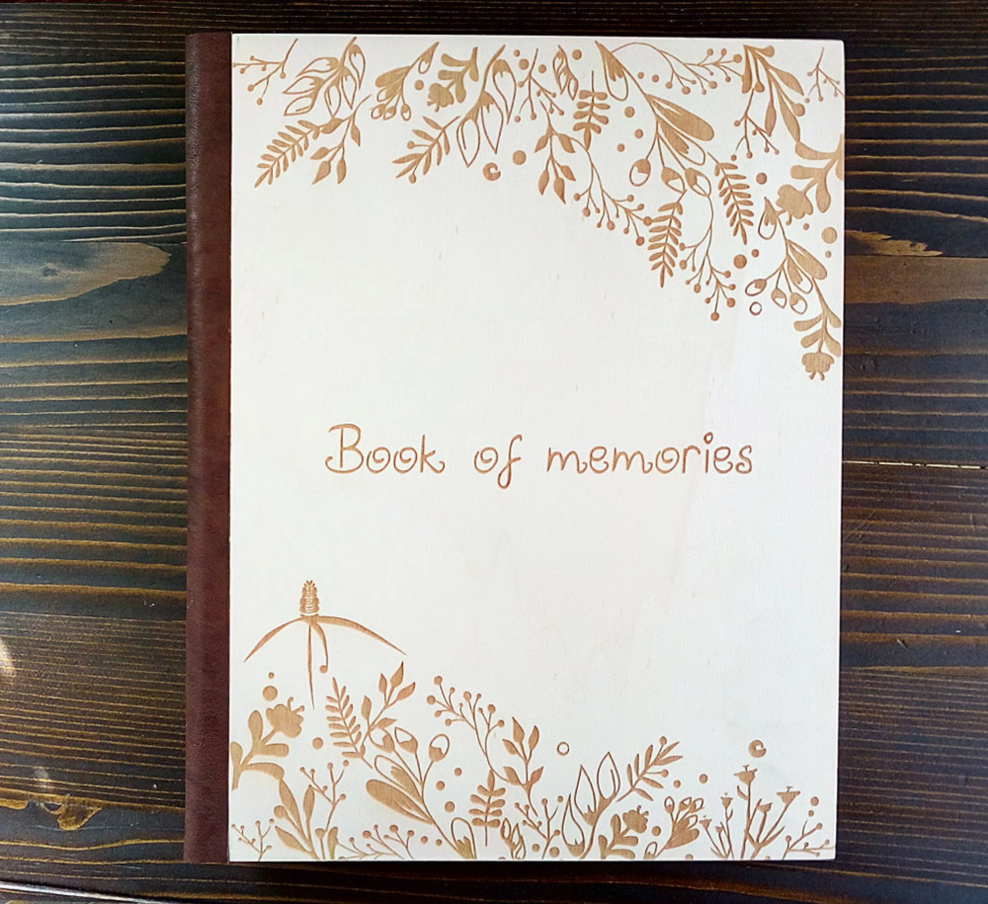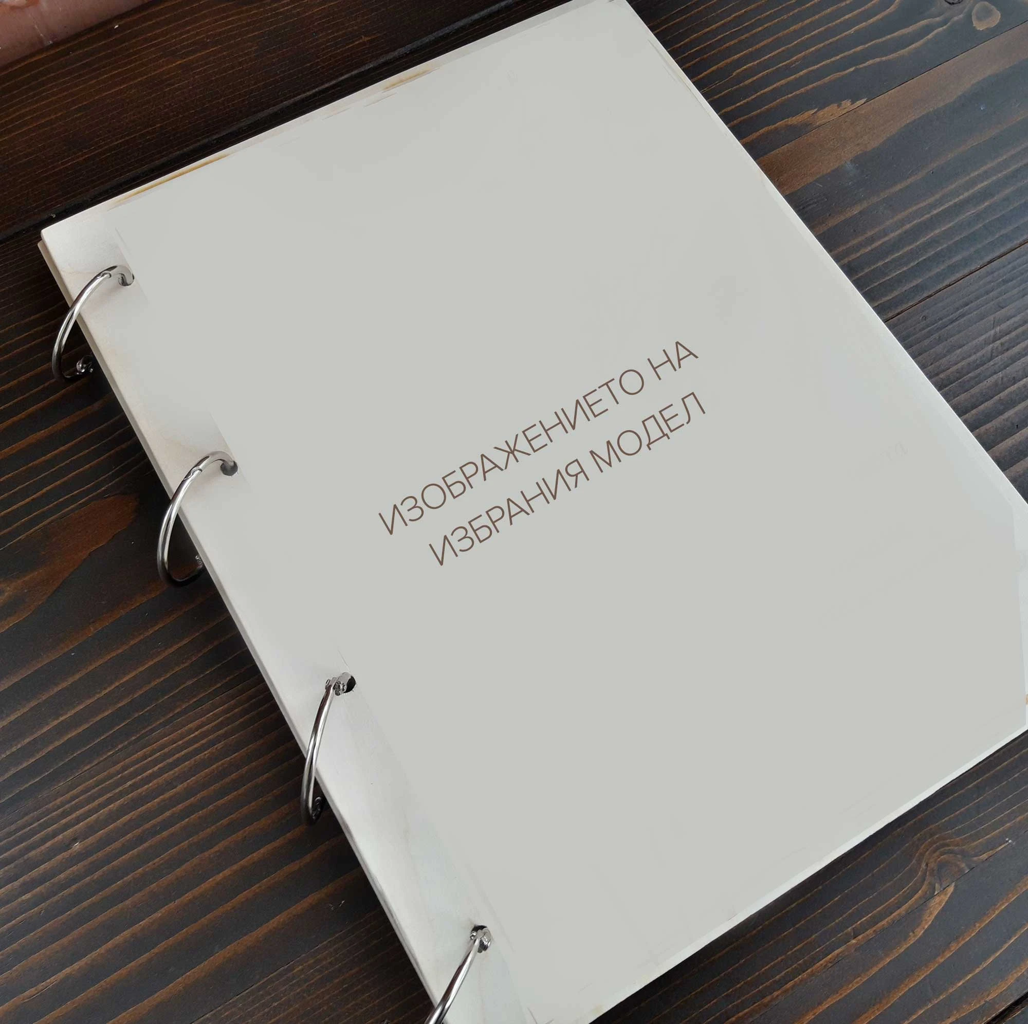 Луксозен албум за снимки с лазерно гравирани, дървени корици.