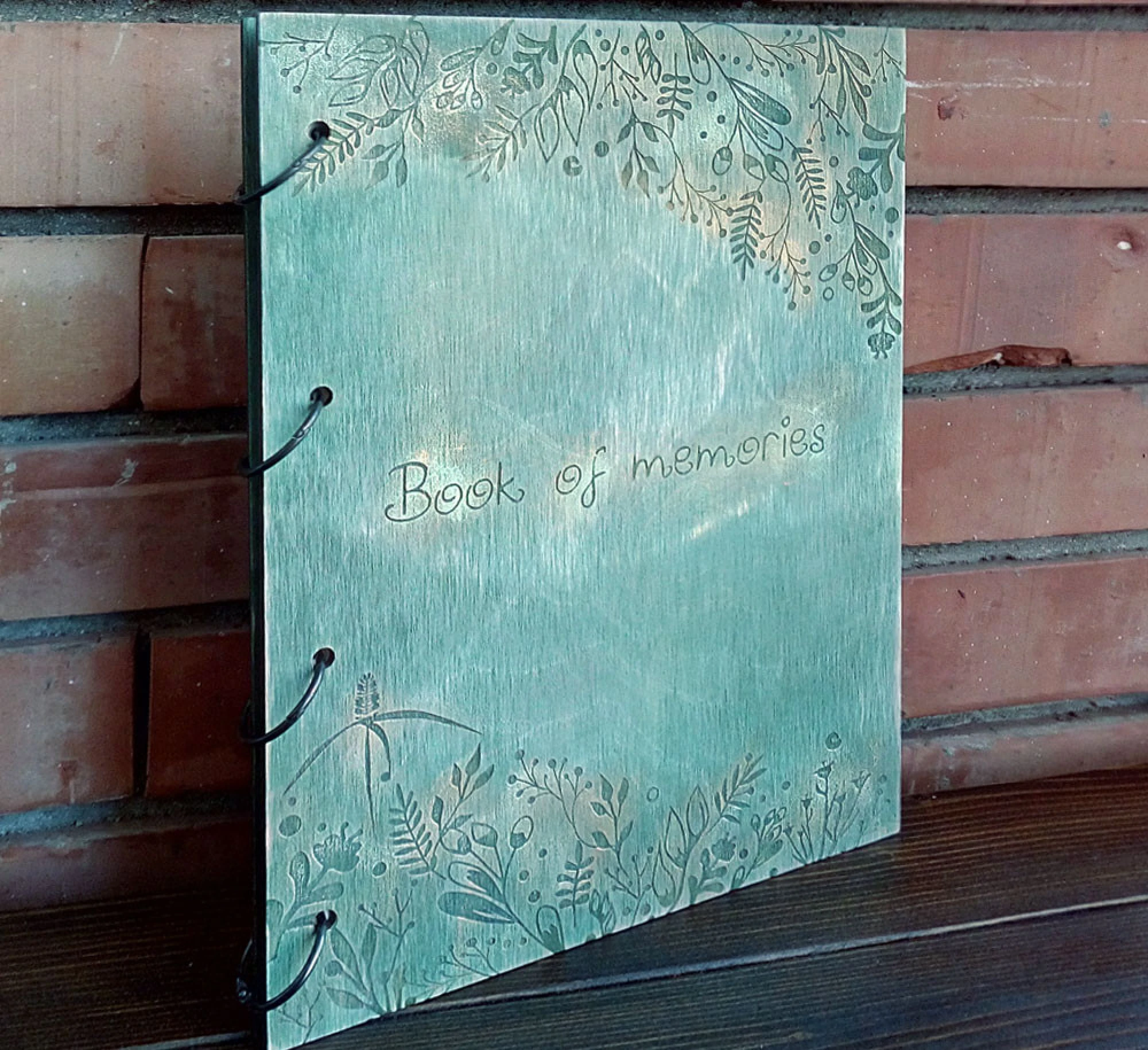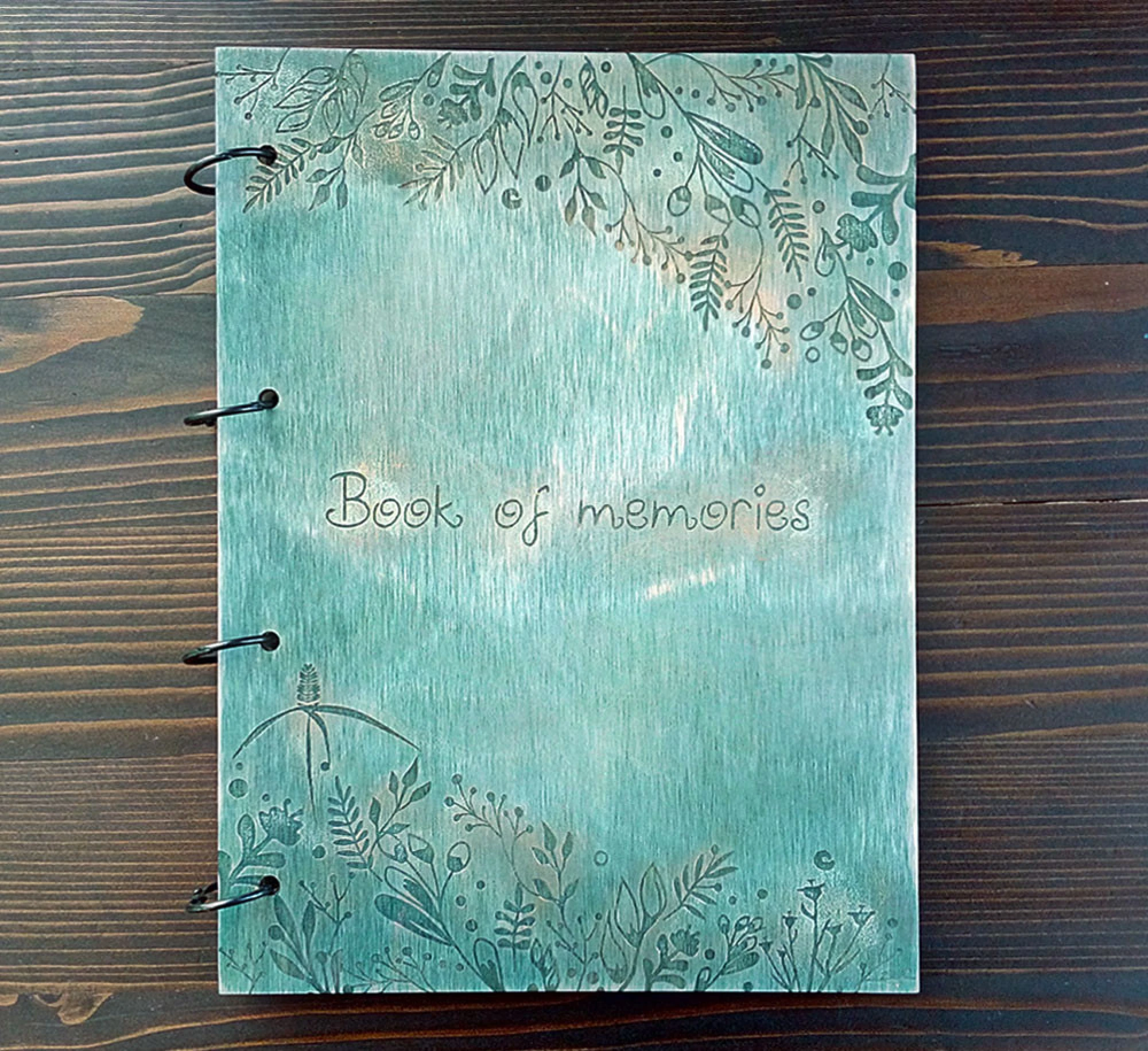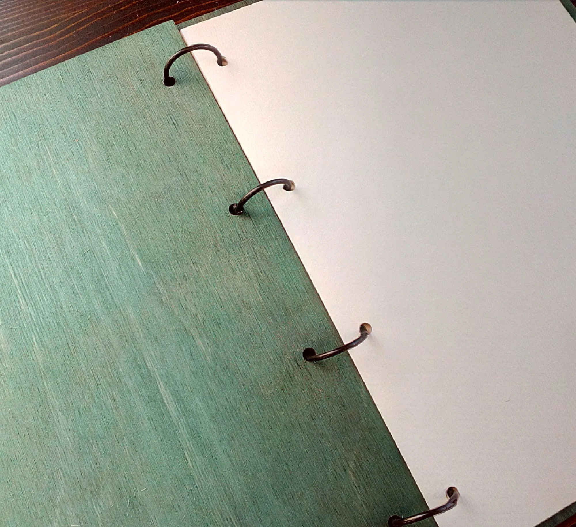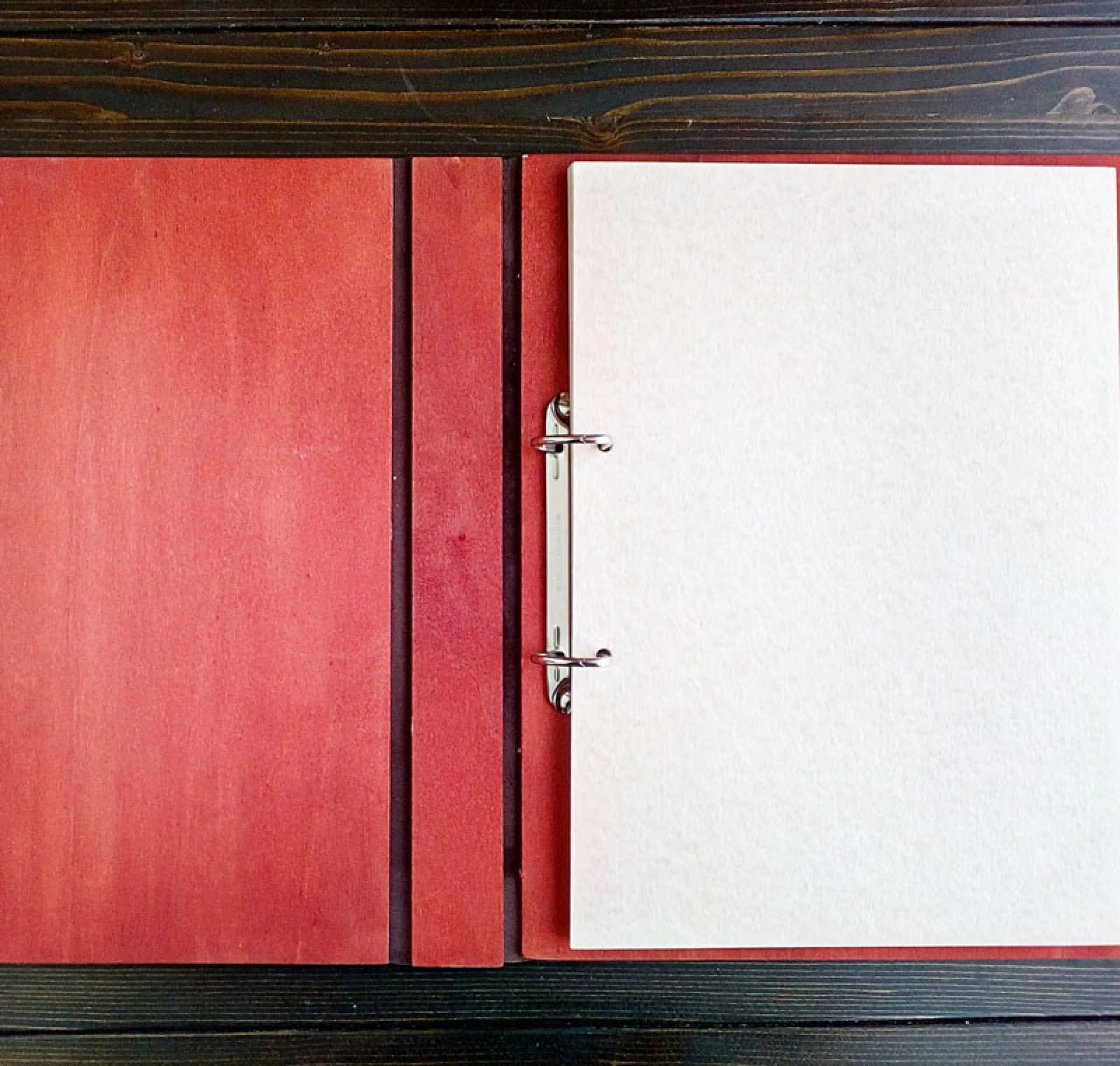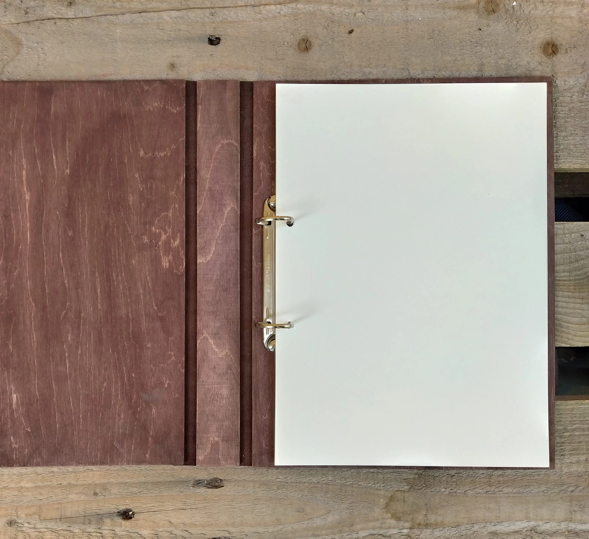 Албумът е изработен от дърво, естествена кожа, метален ринг механизъм.