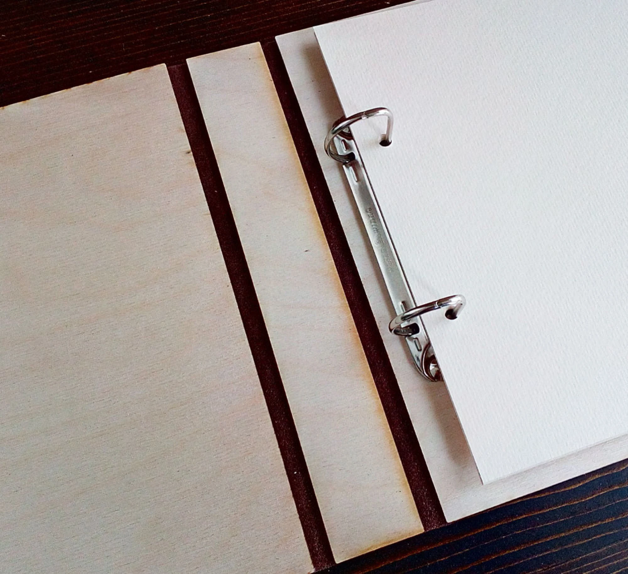 Албумът е изработен от дърво, естествена кожа, метален ринг механизъм.