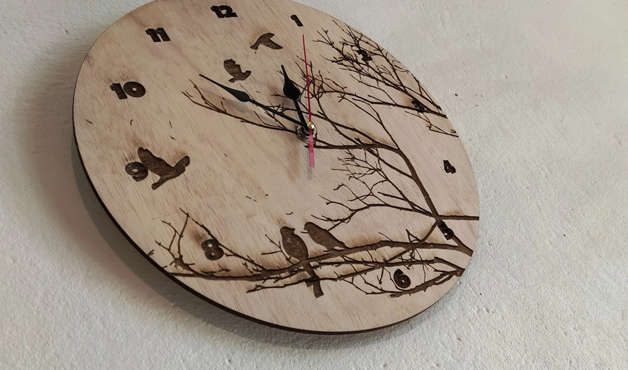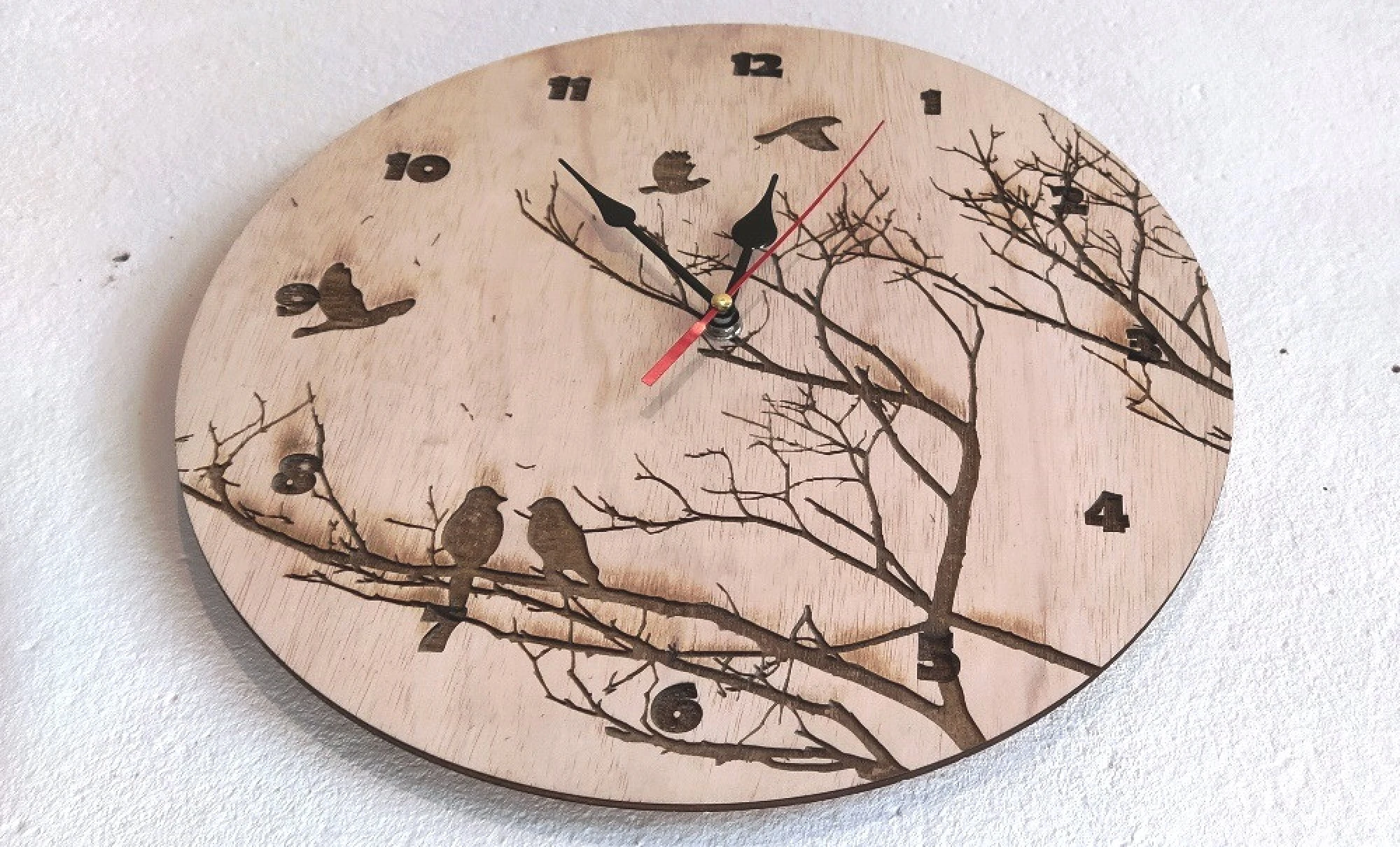 Лазерно гравиран, стенен часовник от дърво, 4 мм. Размер: около 30 см