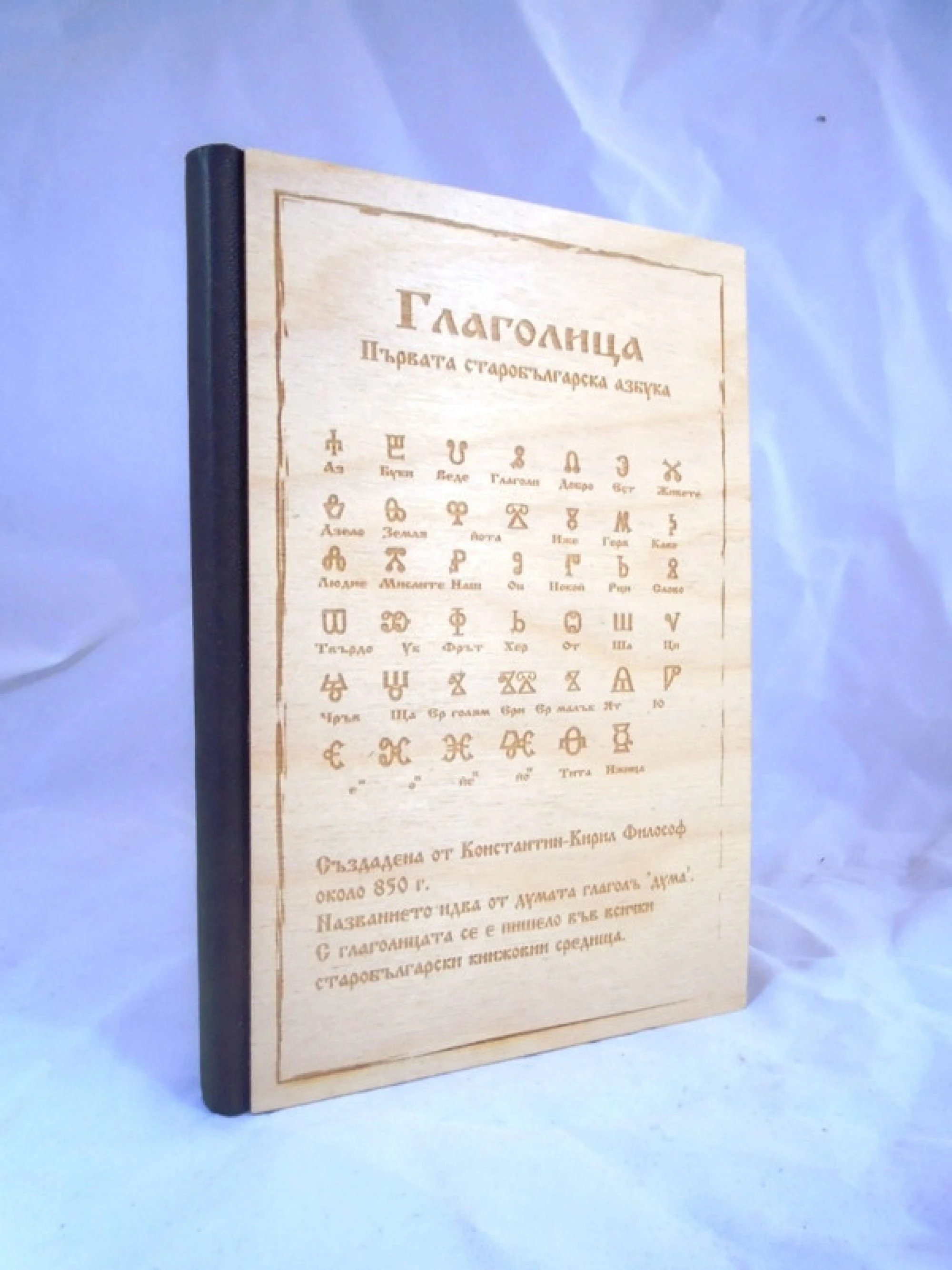 Луксозен тефтер с дървени корици -Глаголица