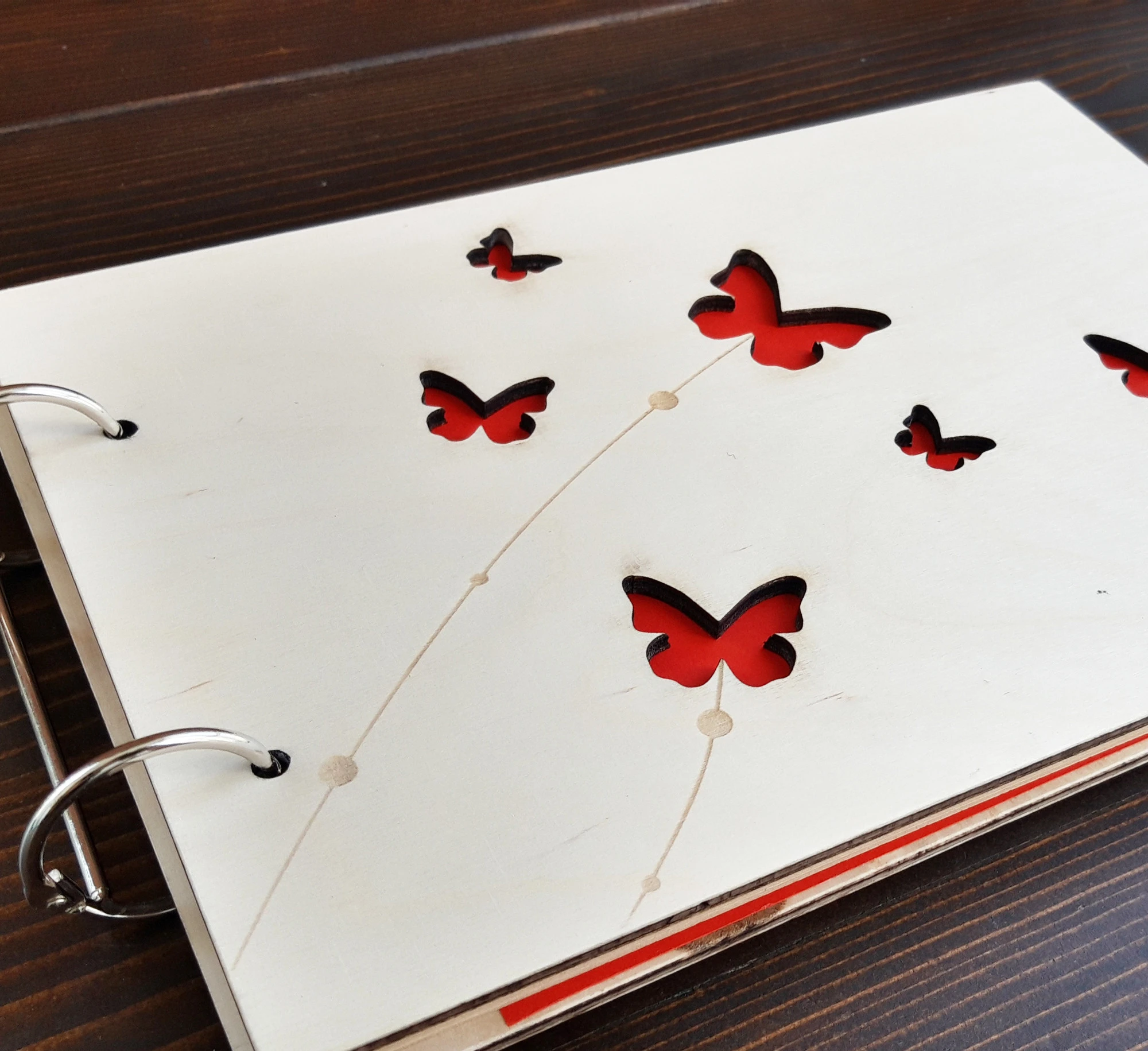 Дизайнерски, лазерно гравиран албум за снимки с дървени корици.