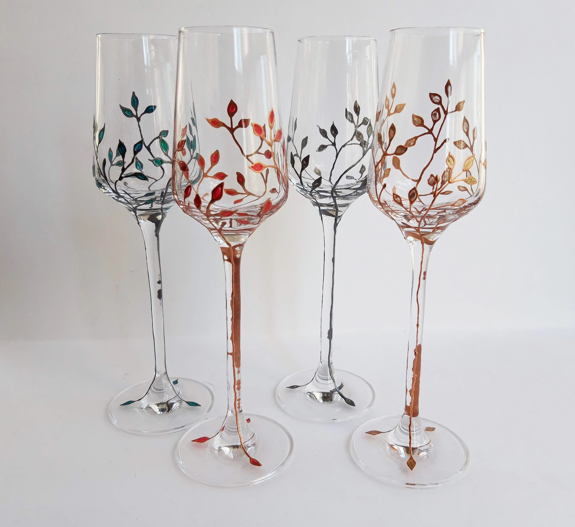 Изискан подарък за всеки дом. Ръчно рисуваните чаши, ще са бижу за всяка празнична трапеза. Украсени с малки и фини листенца те са изключително нежни и красиви.