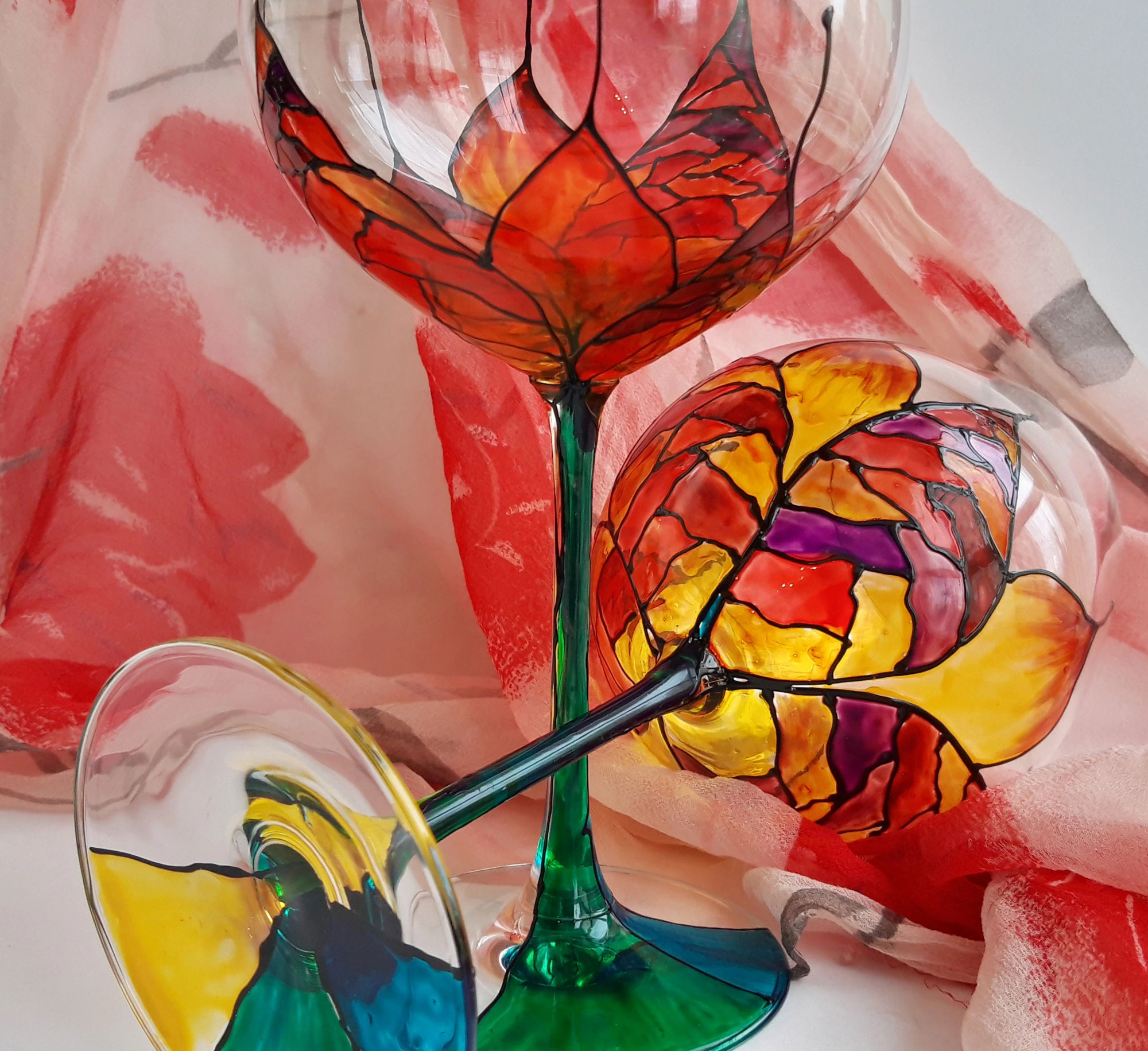 Рисувани чаши за вино - Цветни листа