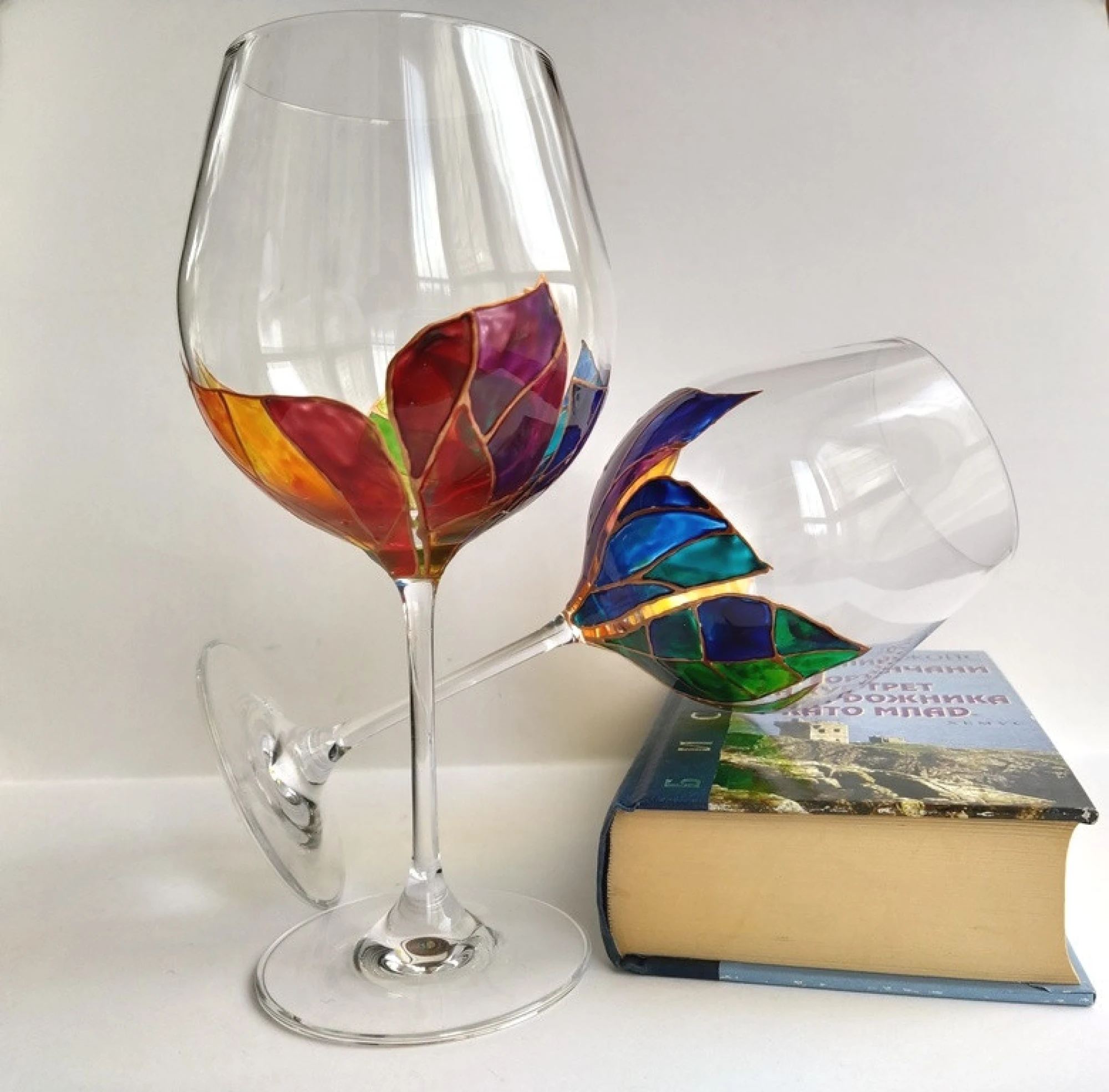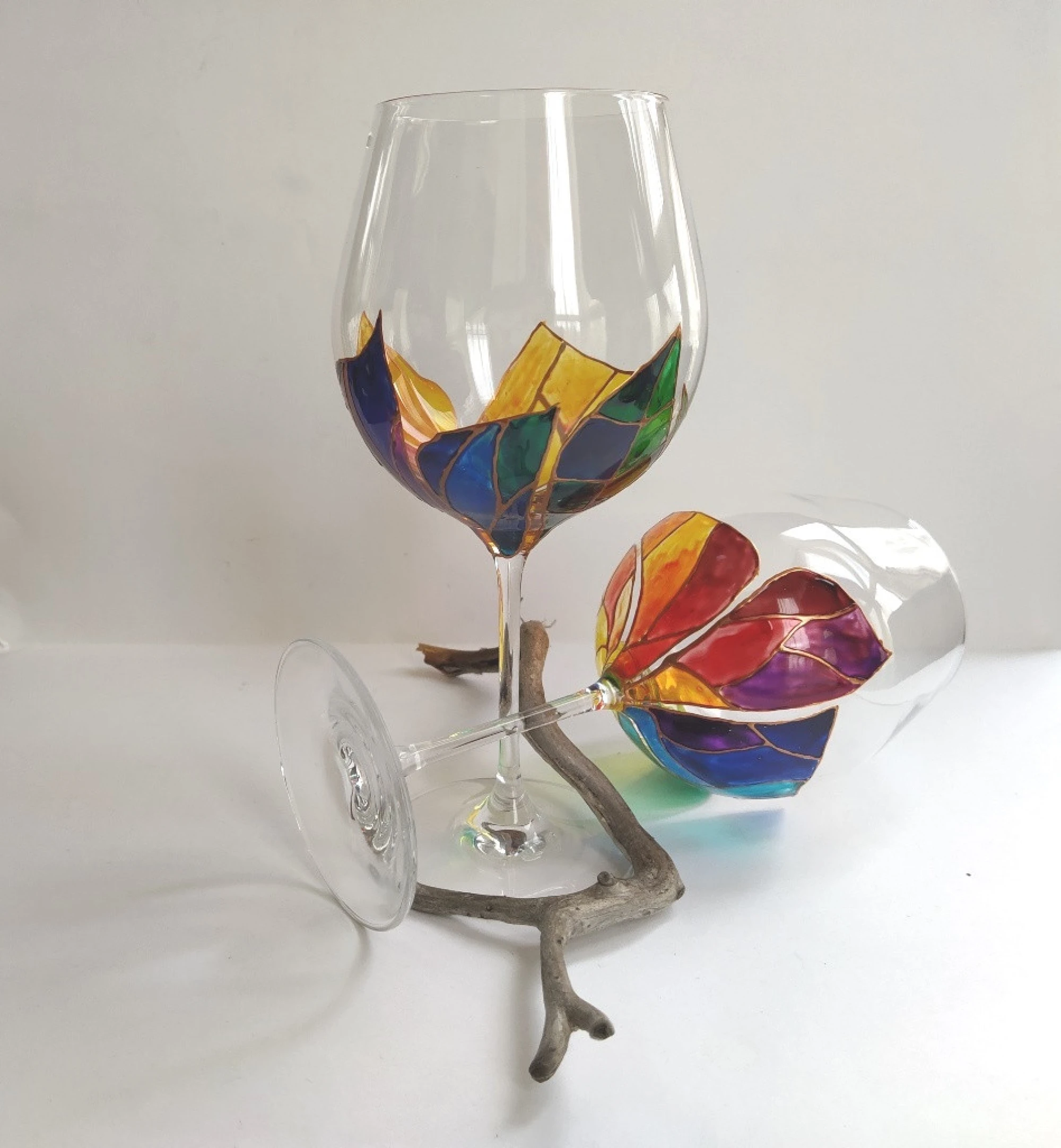Рисувани чаши за вино - Листенца