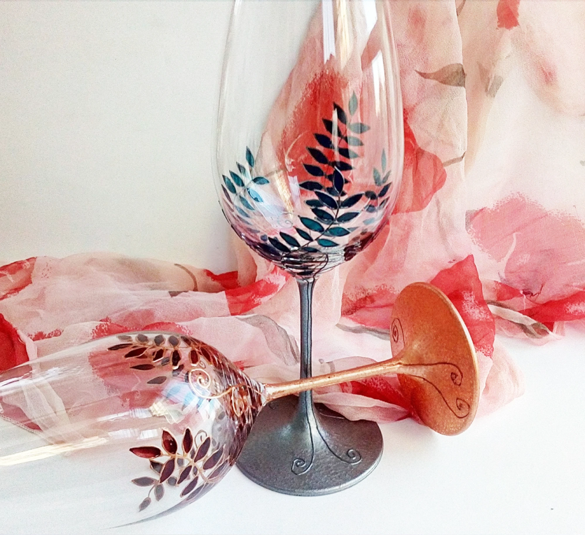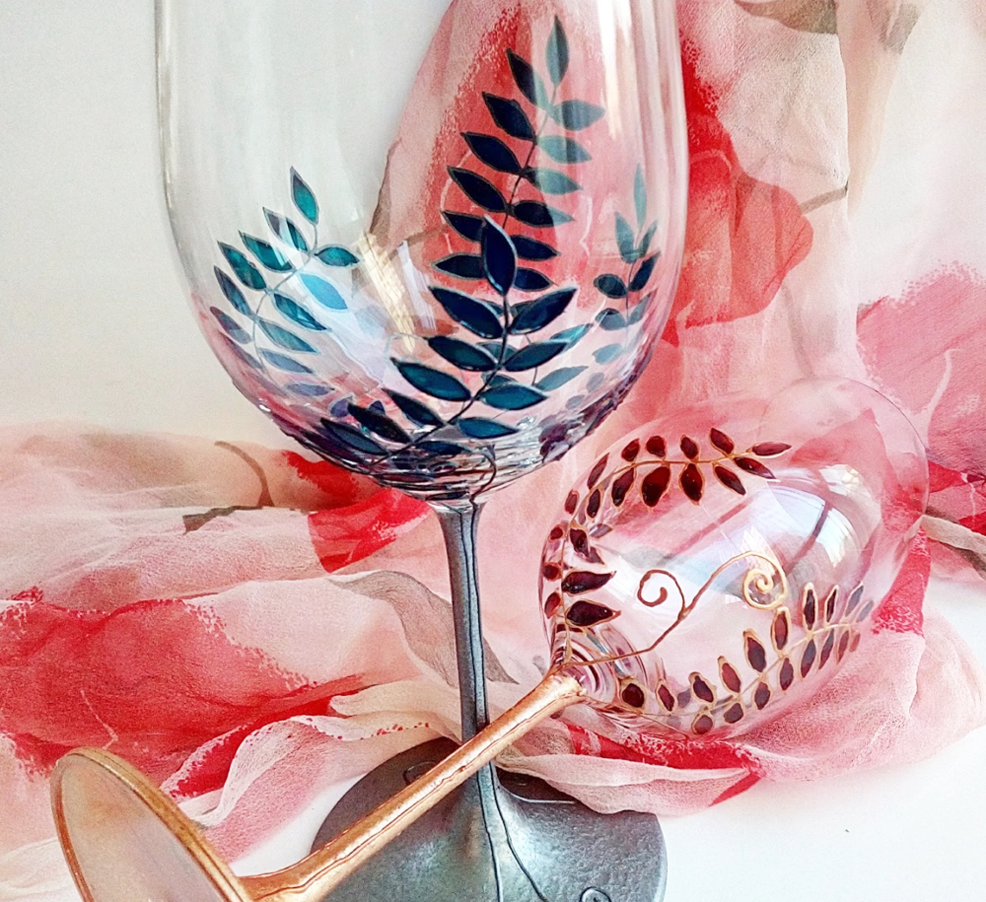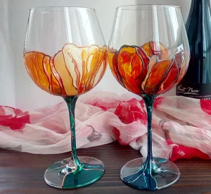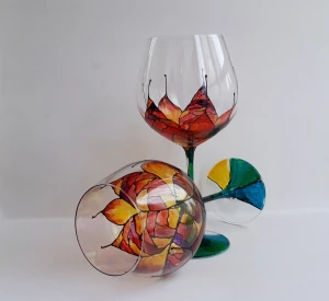 Рисувани чаши за вино - Листенца
