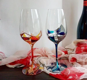 Ръчно рисувани чаши за вино.