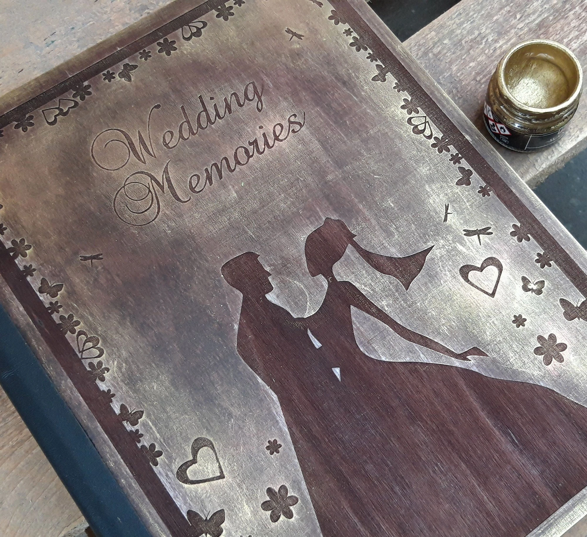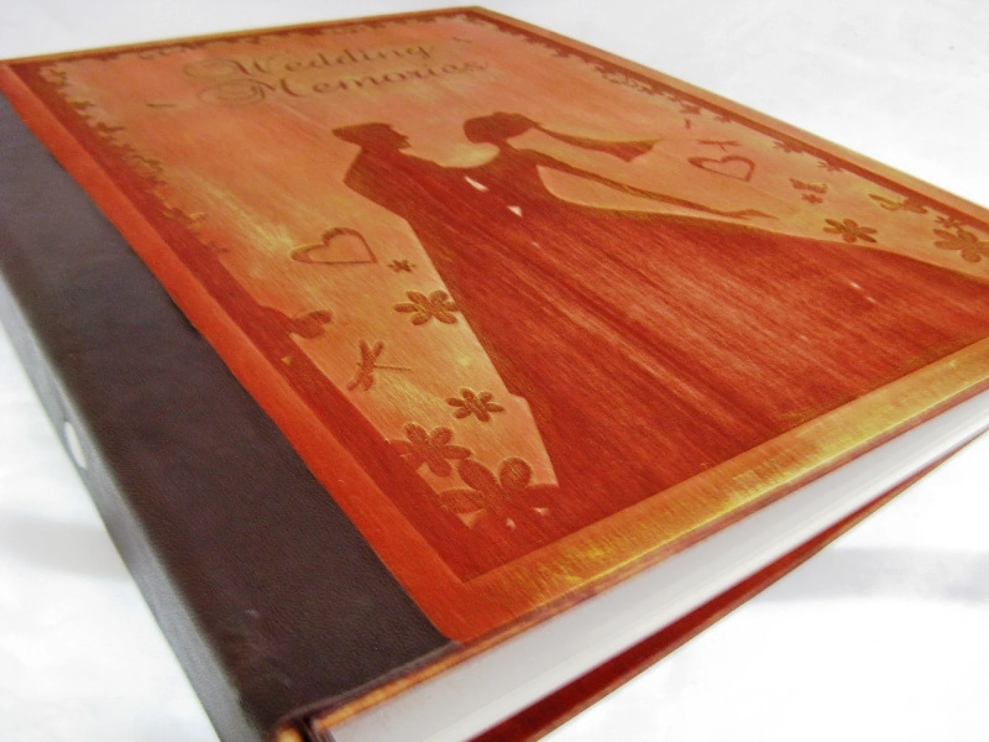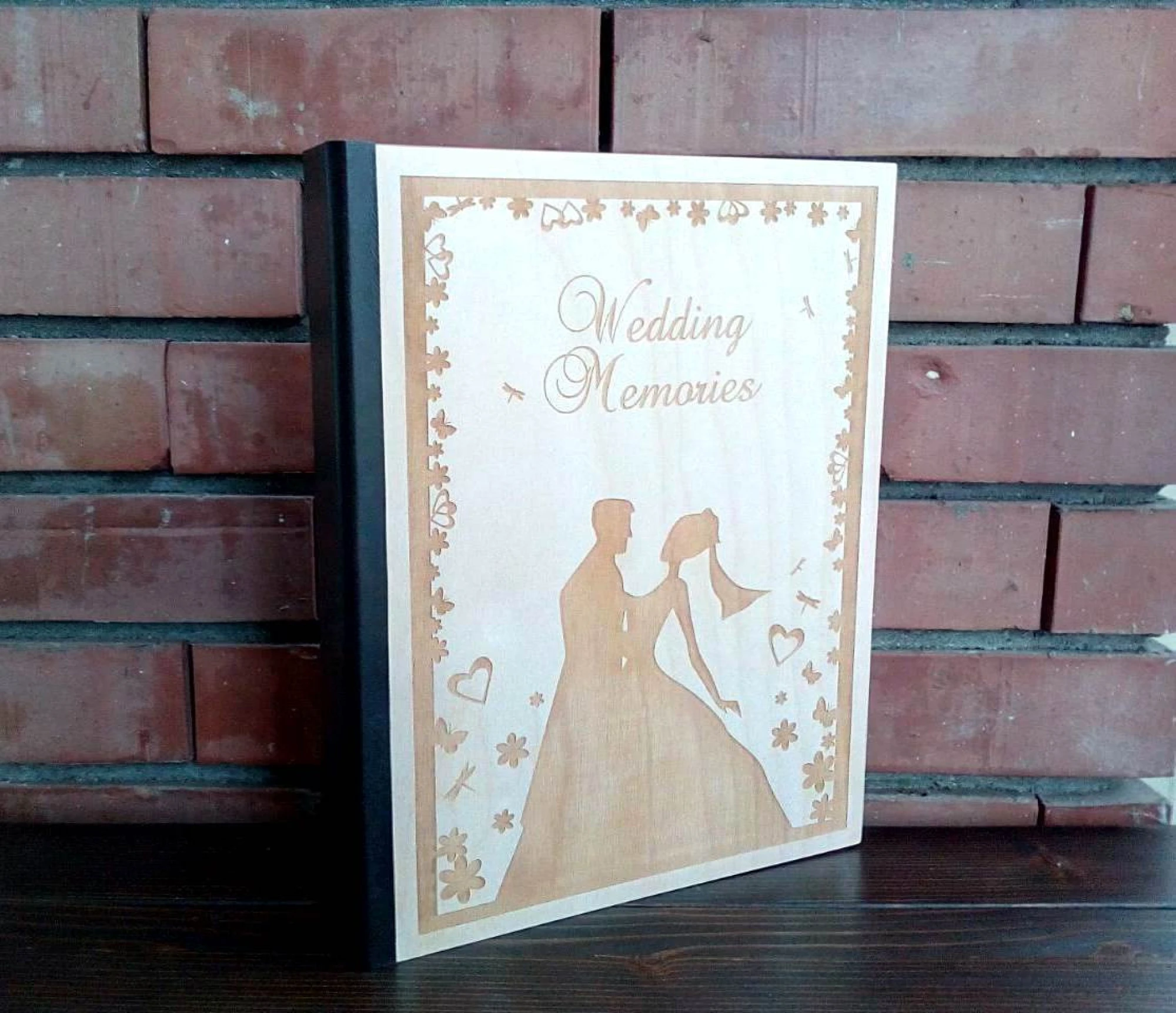 Луксозен албум за снимки с лазерно гравирани, дървени корици - ръчна изработка. Подходящ за сватба, но с възможност за гравиране на различни послания.