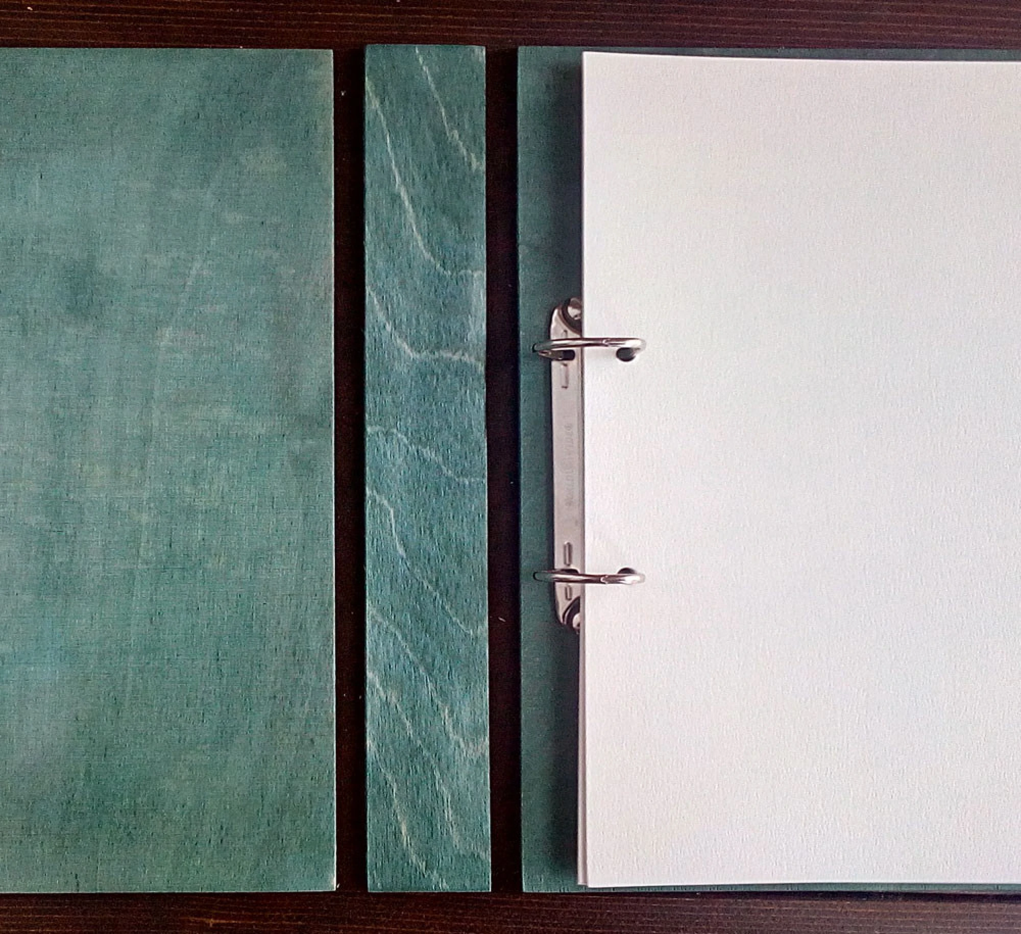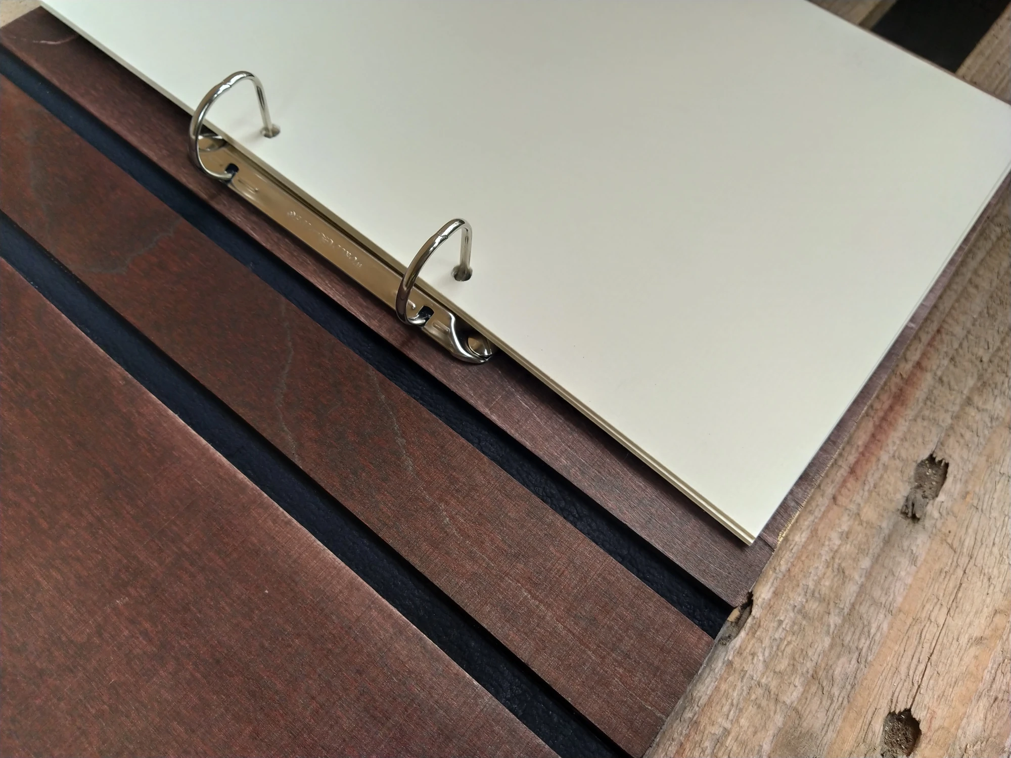 Албумът е изработен от дърво, естествена кожа, метален ринг механизъм.